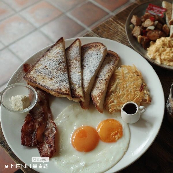 絕美獨棟庭院鄉村風搭配上兩層樓玻璃屋,餐點種類多元,推薦美式鬆餅早餐、費城牛肉起司三明治、羅勒青醬鮭魚干貝麵、熱拿鐵和菠菜野菇起司烤蛋早餐 。